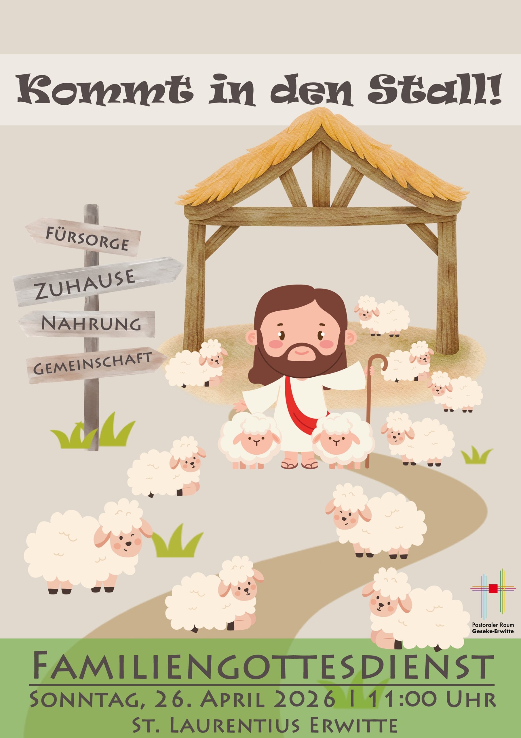 Möchtest du auch wissen was den guten Hirten ausmacht? Dann bist du herzlich eingeladen den Familiengottesdienst mit uns zu feiern.