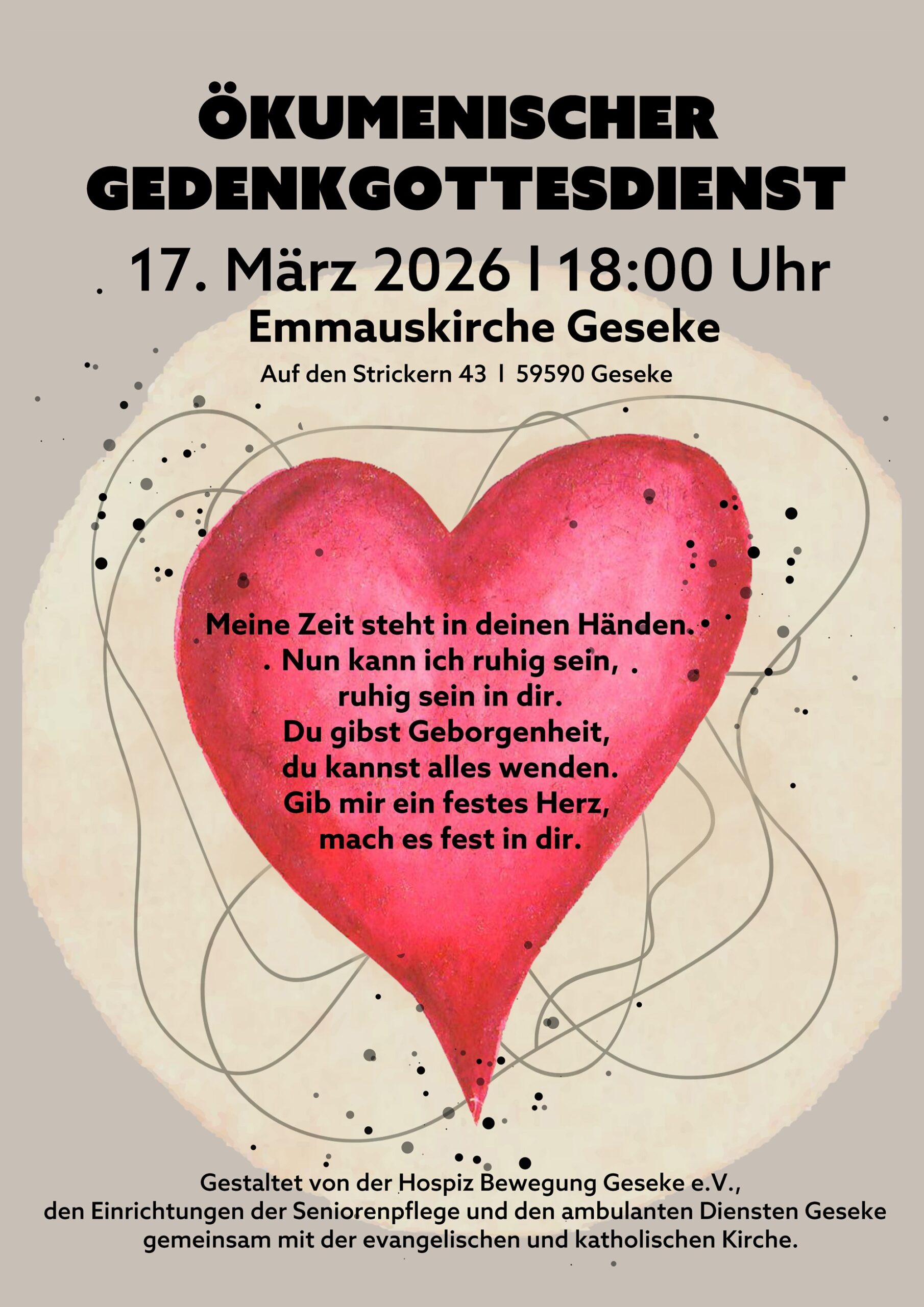 Gestaltet von der Hospiz Bewegung Geseke e.V., den Einrichtungen der Seniorenpflege und den ambulanten Diensten Geseke gemeinsam mit der evangelischen und katholischen Kirche.